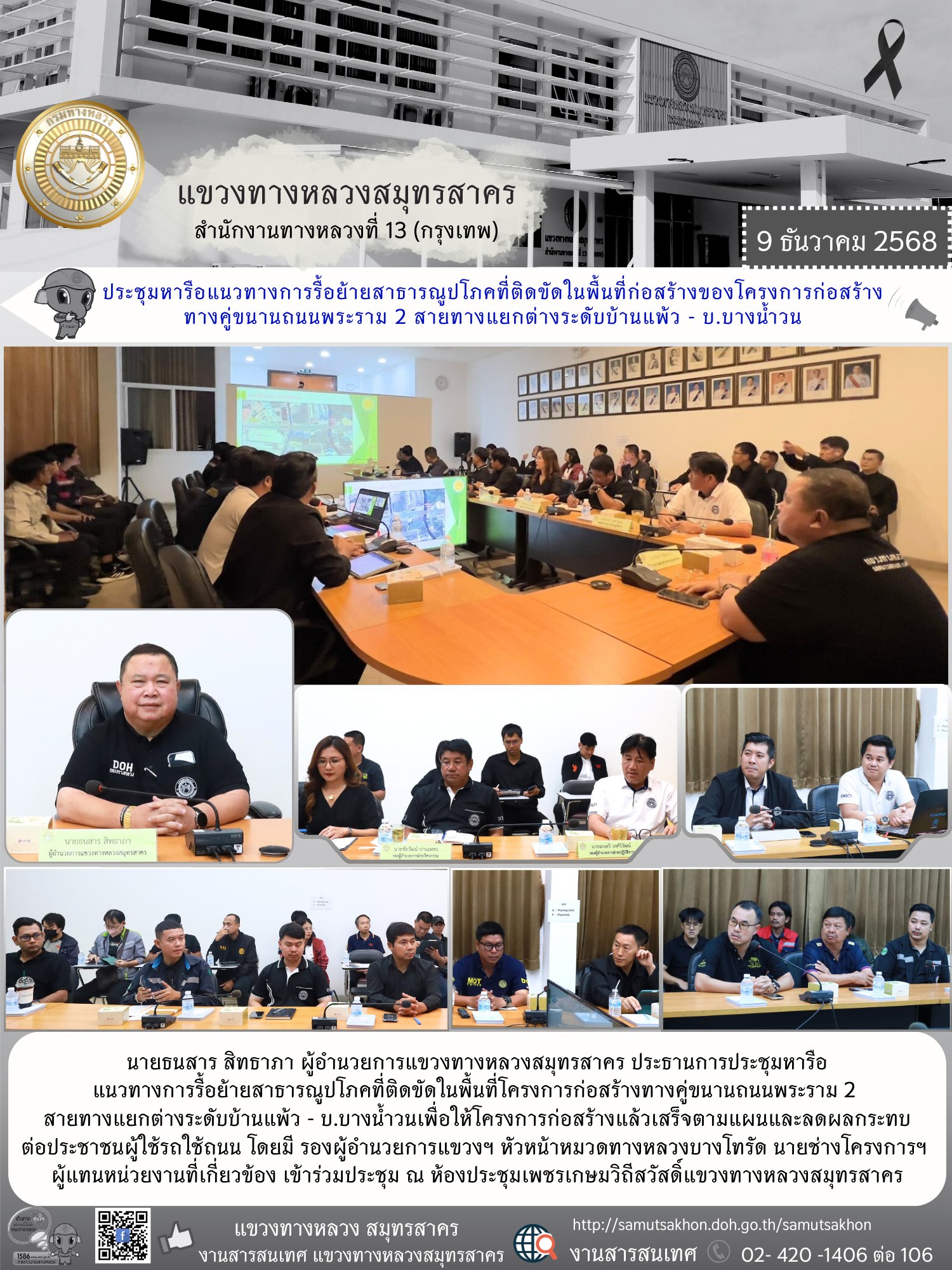 4 11/12/2568 ประชุมหารือแนวทางการรื้อย้ายสาธารณูปโภคที่ติดขัดในพื้นที่โครงการก่อสร้างทางคู่ขนานถนนพระราม 2 สายทางแยกต่างระดับบ้านแพ้ว - บ.บางน้ำวน