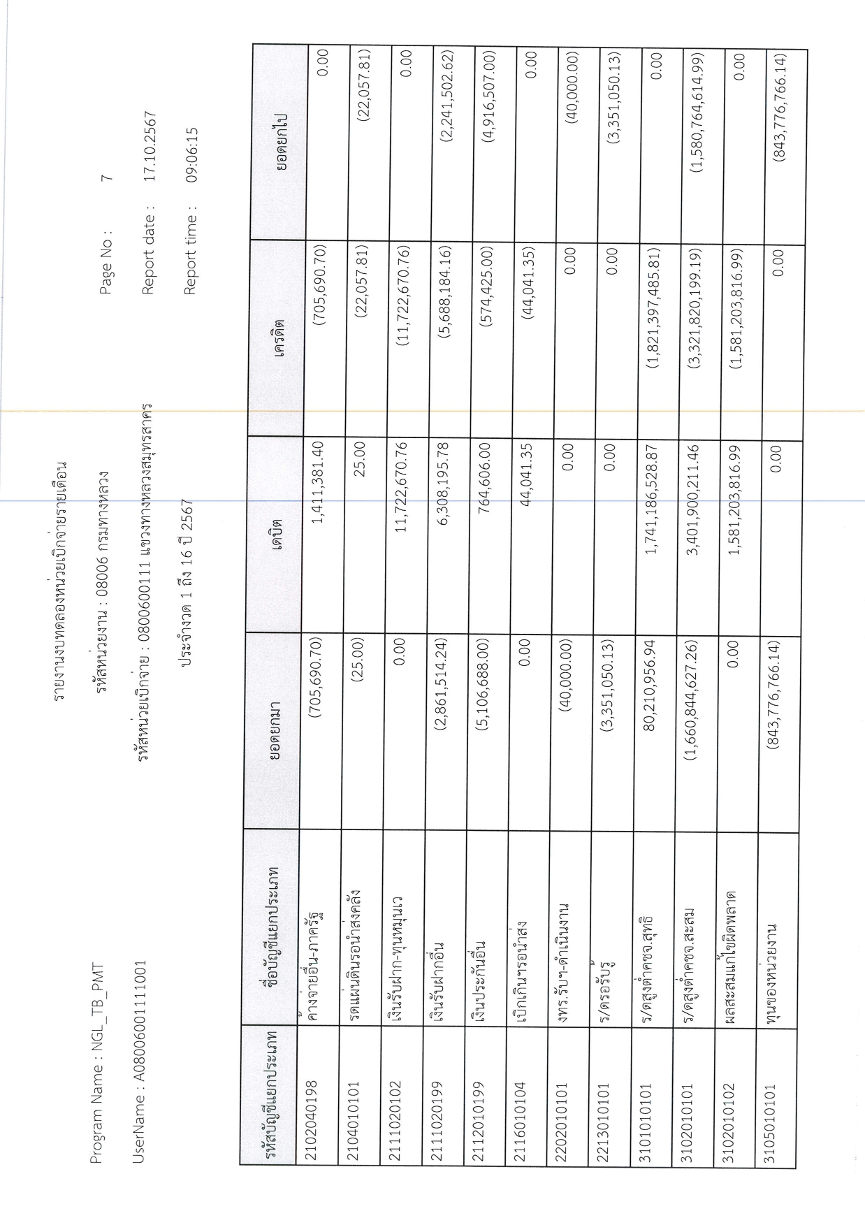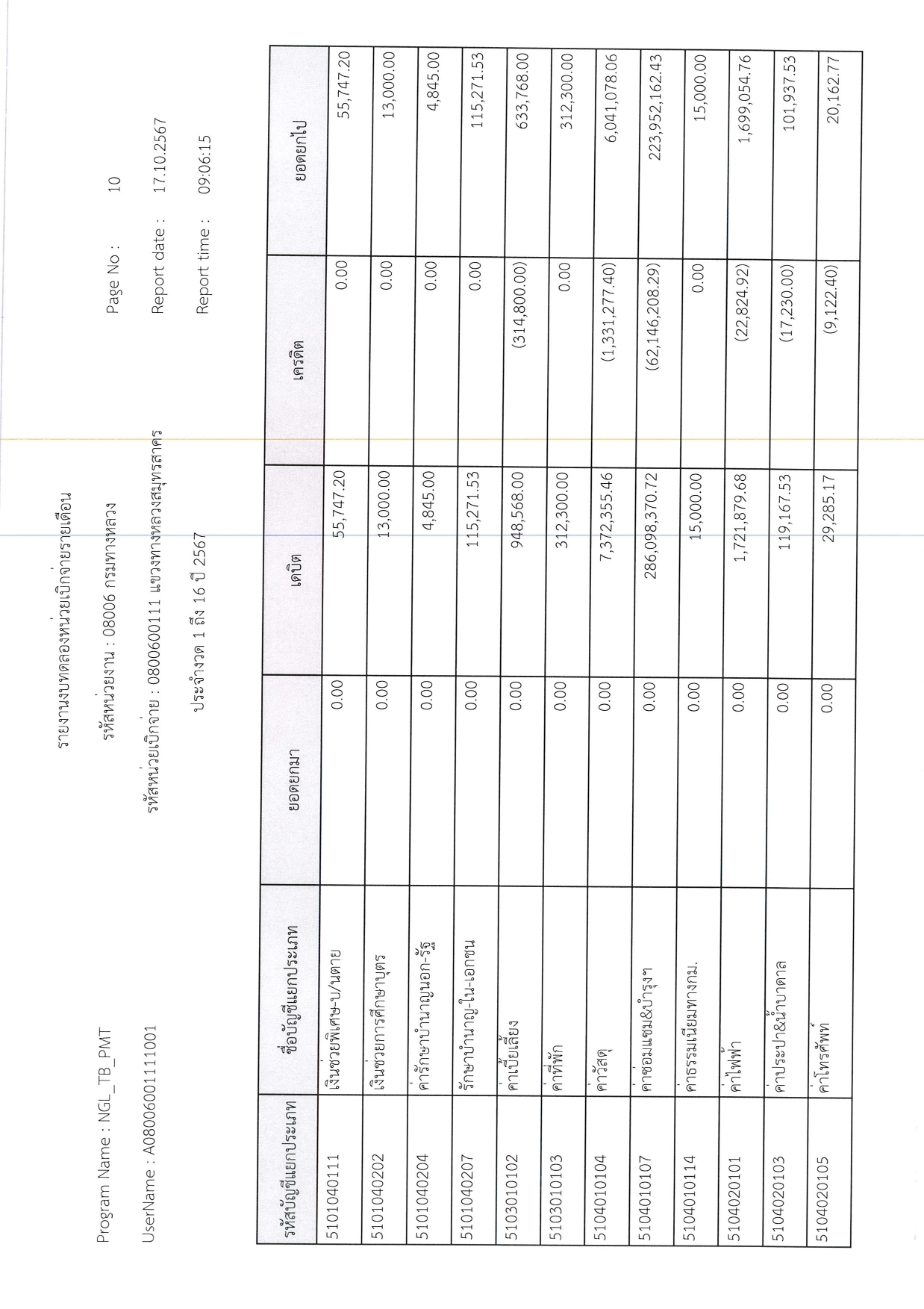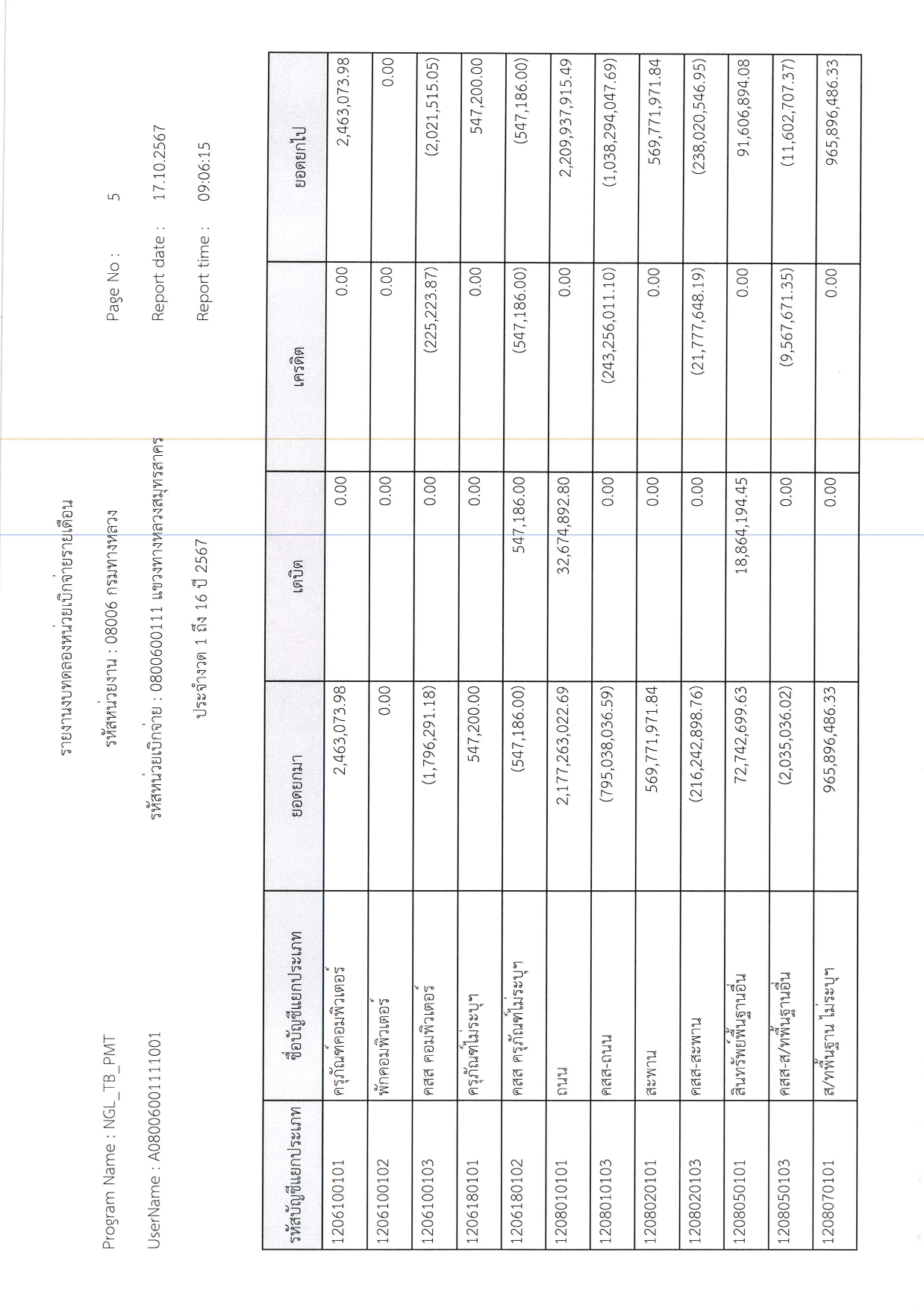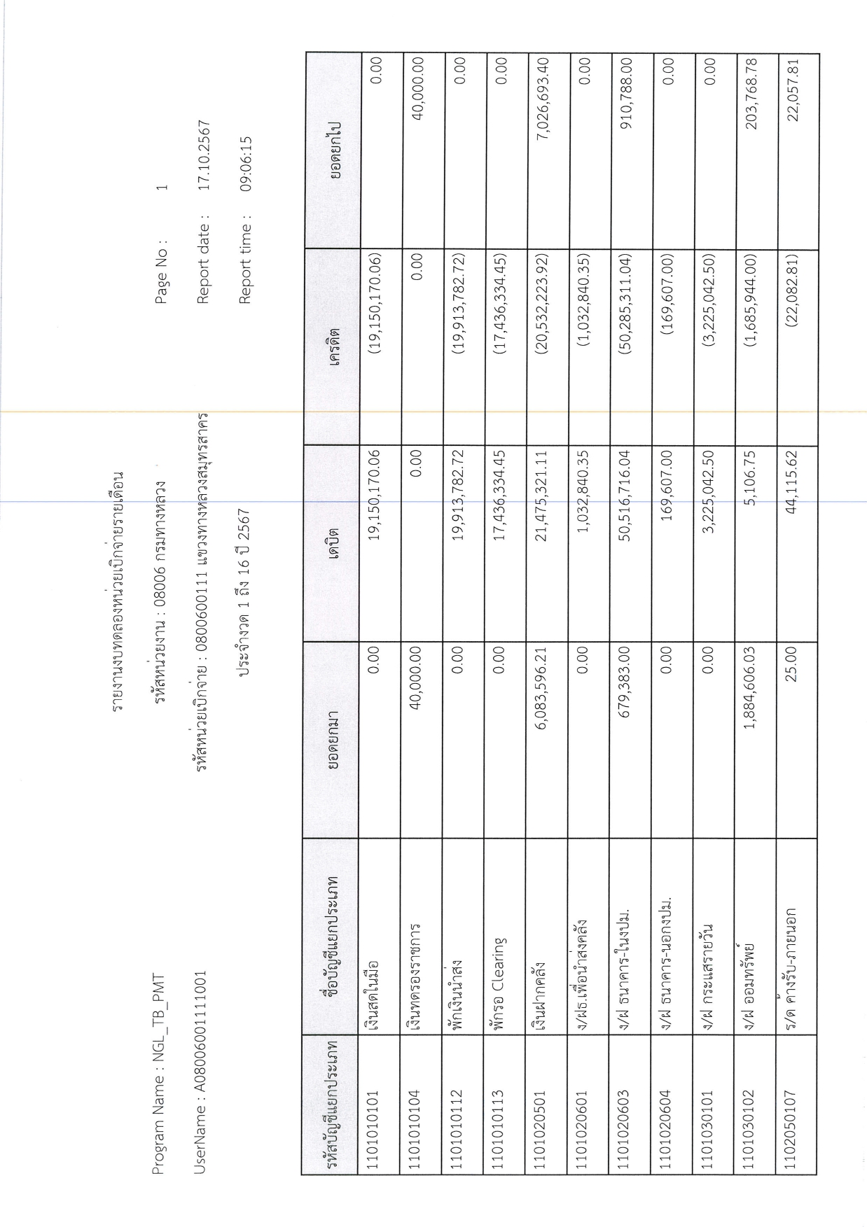 รายงานงบทดลองหน่วยเบิกจ่ายรายเดือน