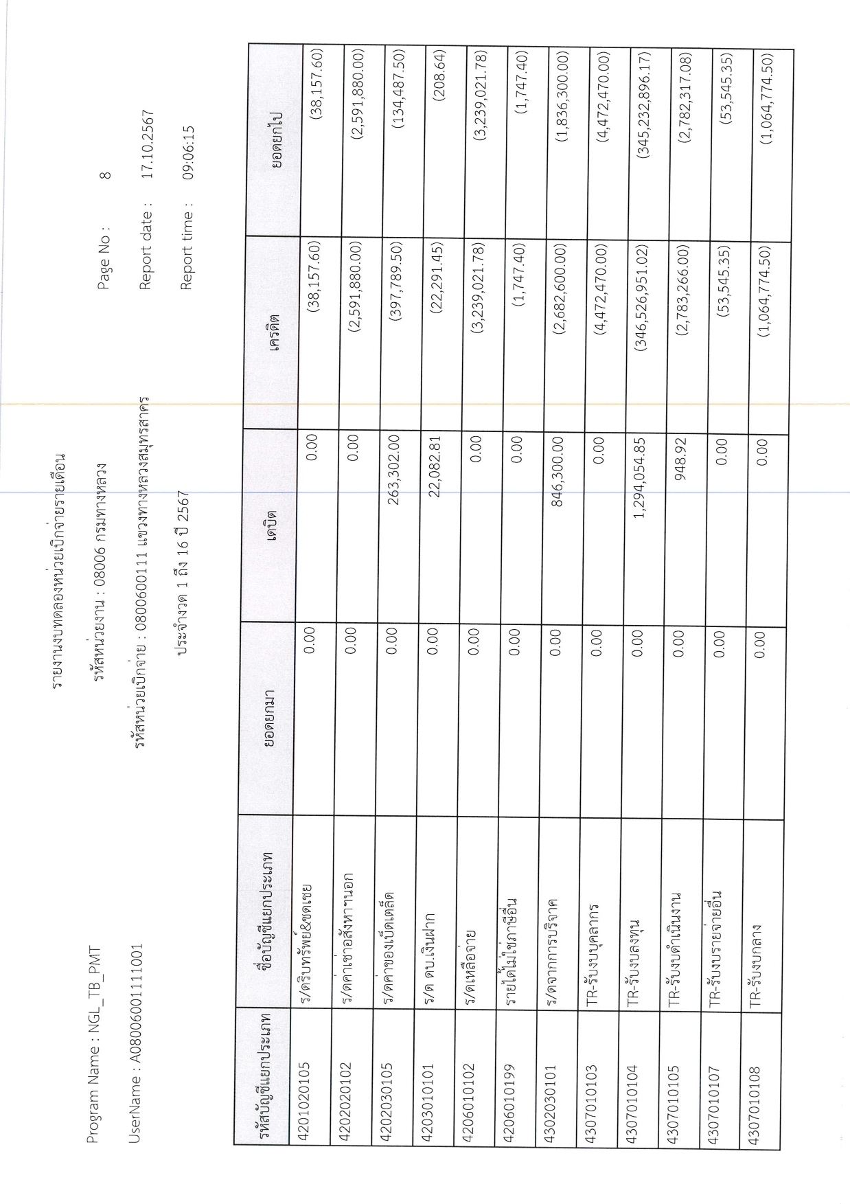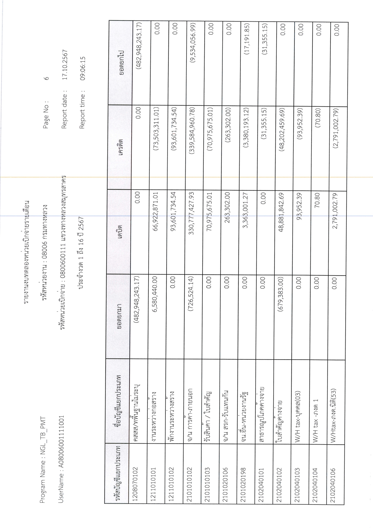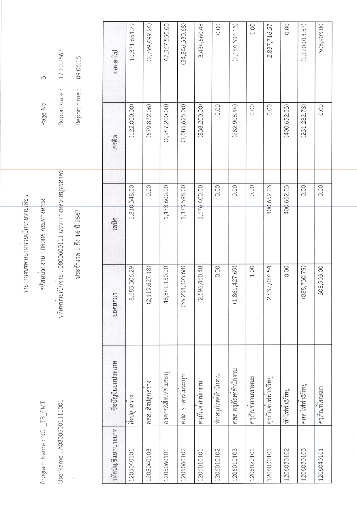 รายงานงบทดลองหน่วยเบิกจ่ายรายเดือน