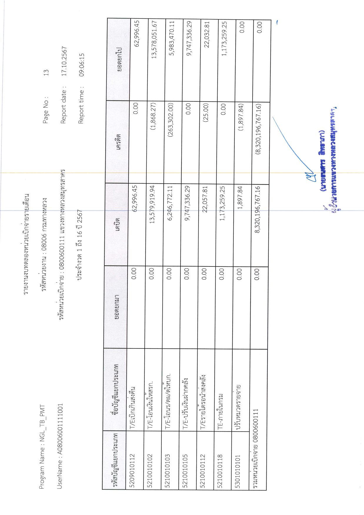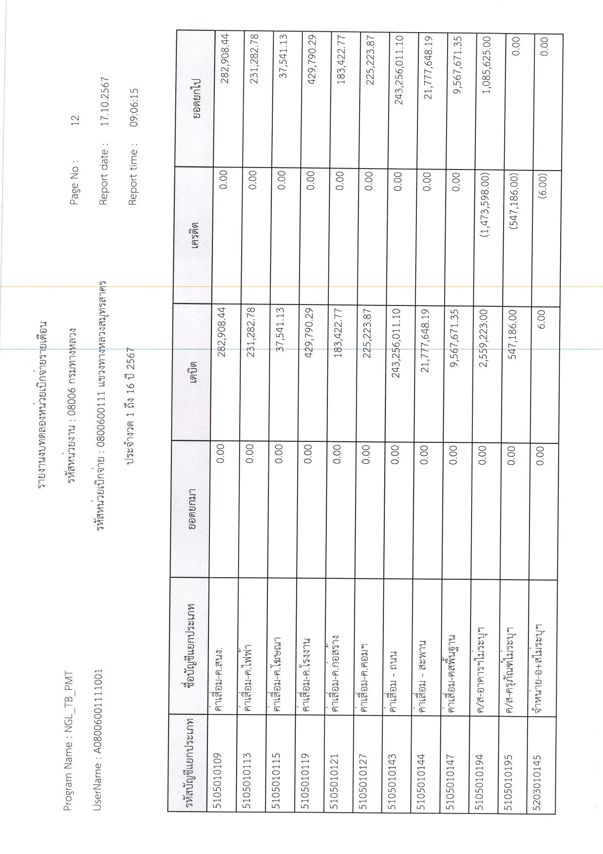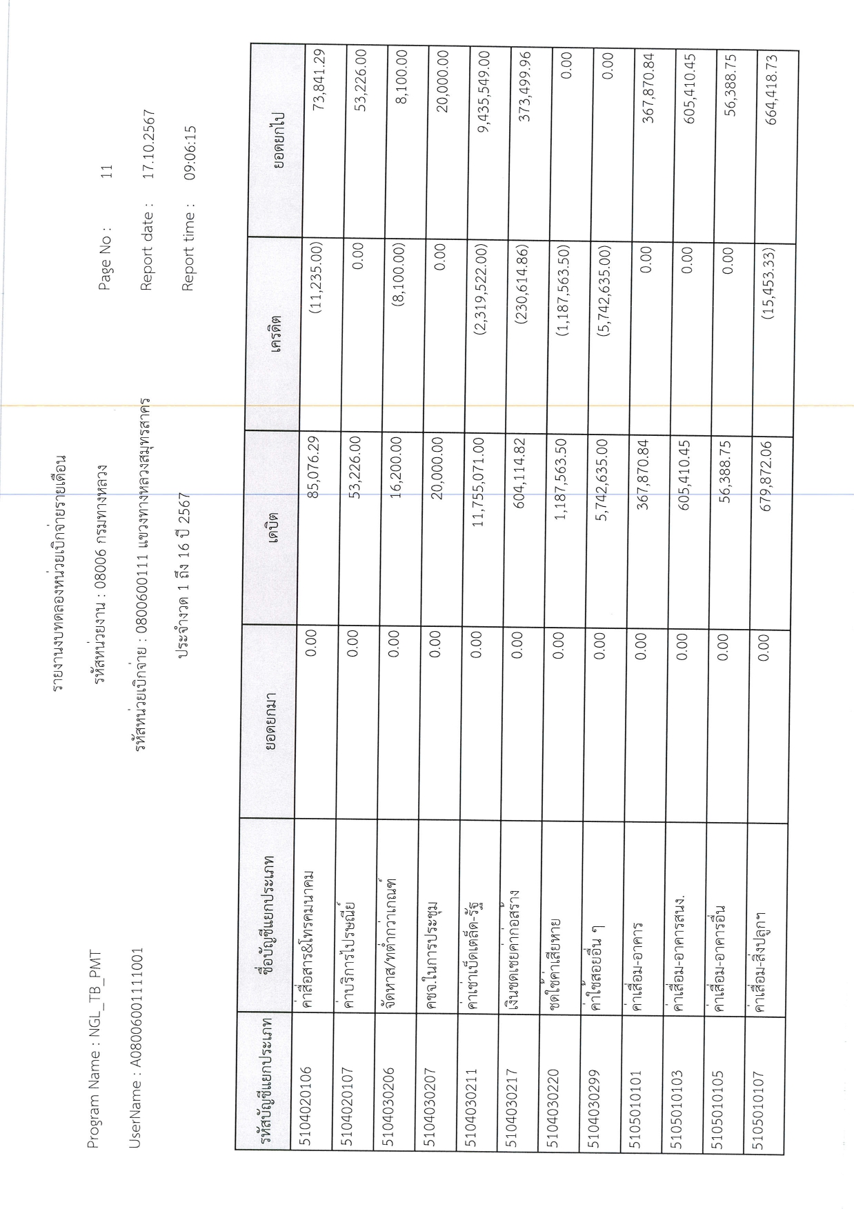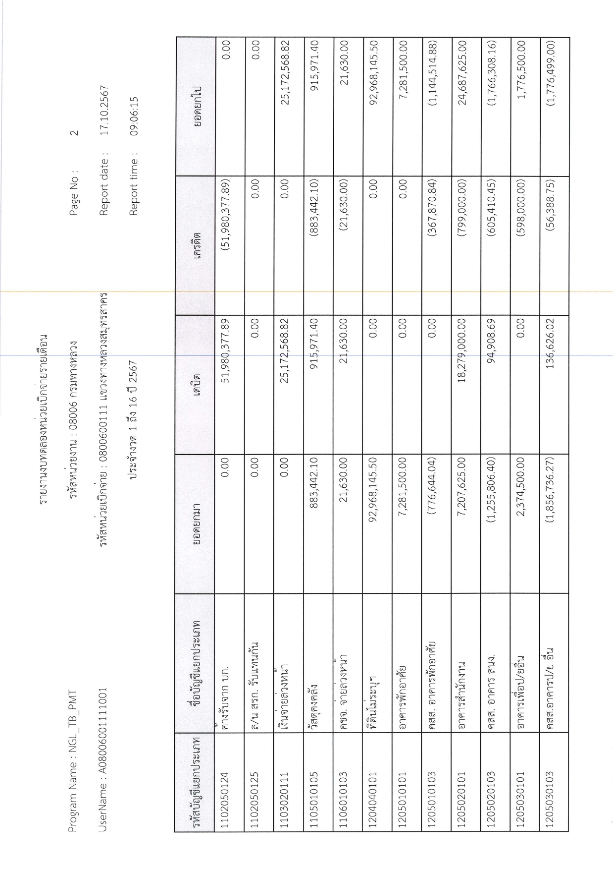 รายงานงบทดลองหน่วยเบิกจ่ายรายเดือน
