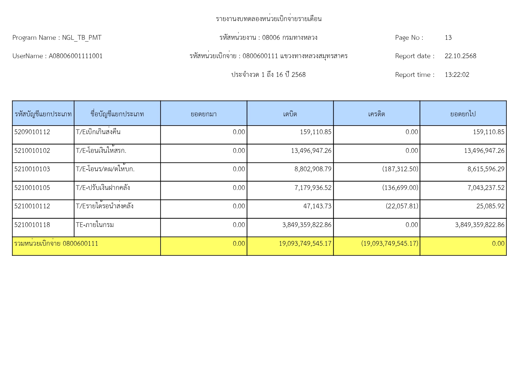 หลักฐานการเปิดเผยงบทดลองประจำเดือน กันยายน 2568