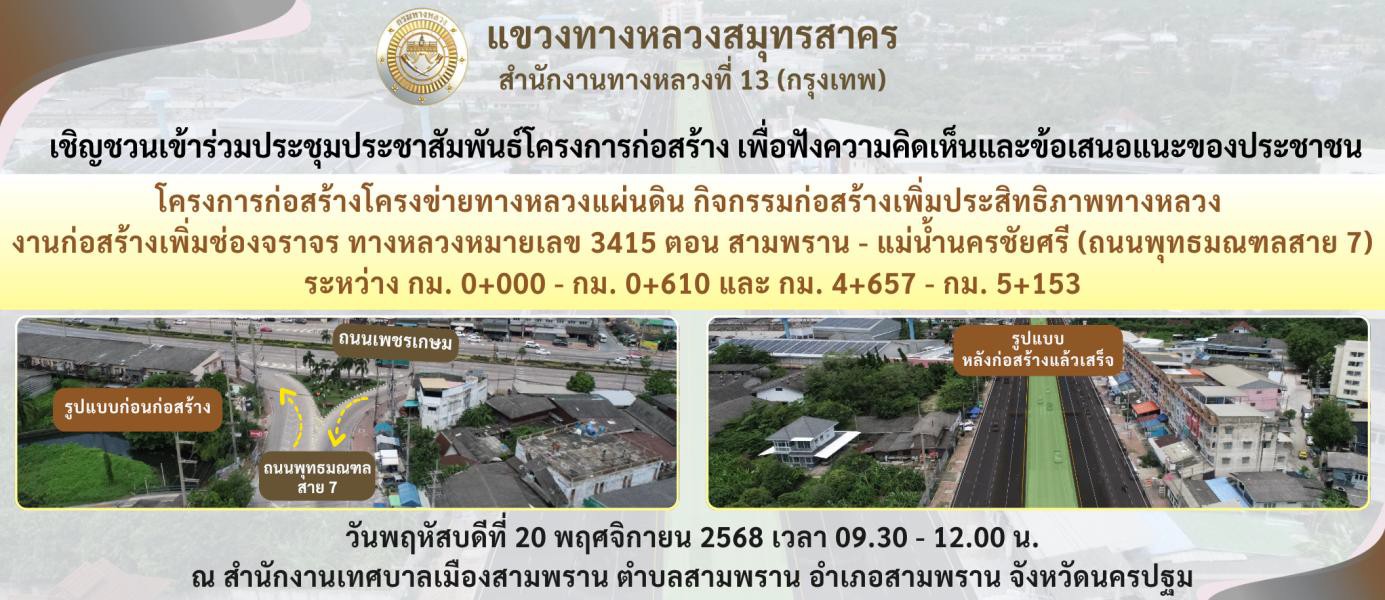 2. โครงการก่อสร้างโครงข่ายทางหลวงแผ่นดิน กิจกรรมก่อสร้างเพิ่มประสิทธิภาพทางหลวง (งานก่อสร้างเพิ่มช่องจราจร) ทางหลวงหมายเลข 3415 ตอน สามพราน - แม่น้ำนครชัยศรี ระหว่าง กม. 0+000 - กม. 0+610 และ กม. 4+657 - กม. 5+153 ระยะทางยาวประมาณ 1.106 กิโลเมตร 6 ดาวน์โหลด